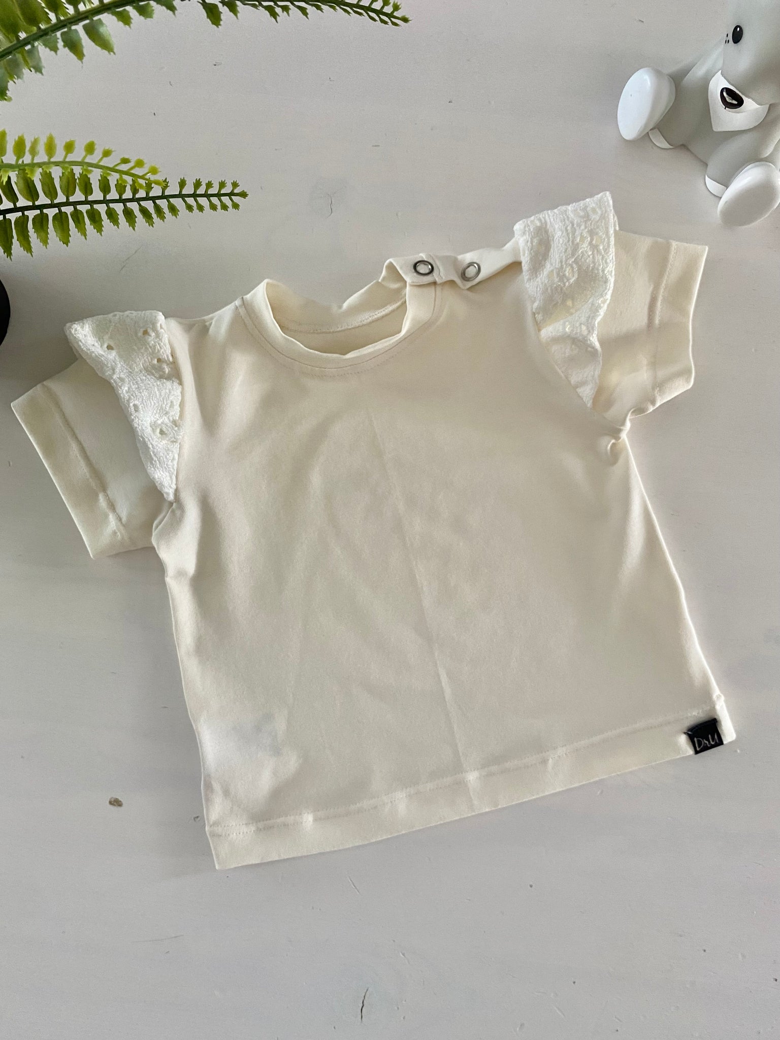 Ruffle t-shirt ecru with embroidery