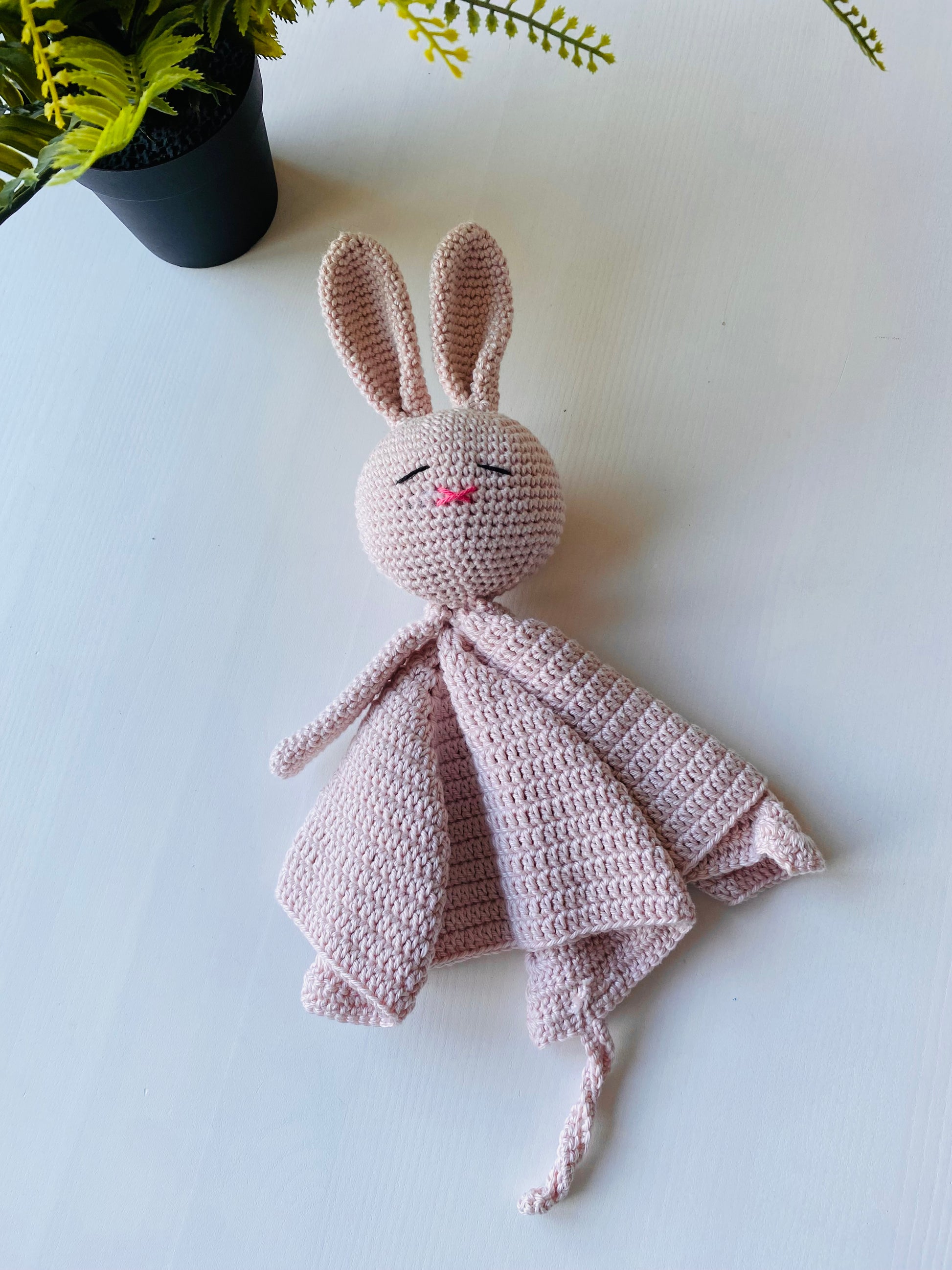 Ontdek de perfecte knuffelvriend voor je kleintje: ons gehaakte knuffeldoekje met speenkoord in een lichte oud roze katoenen garen! Dit lieve konijntje is niet alleen een superzachte metgezel voor je kleintje, maar ook een praktisch doekje met een handig speenkoord dat alles op zijn plaats houdt. Het zachte licht oud roze kleur straalt een serene charme uit, waardoor het een rustige en elegante aanvulling is voor elke kinderkamer. Gemaakt van 100% katoen, biedt het een knuffelbare textuur die heerlijk aanvoelt en een gevoel van veiligheid en comfort geeft. Of je nu op zoek bent naar een bijzonder cadeau of gewoon een extra dosis liefde voor je kleintje, dit knuffeldoekje met speenkoord konijntje is klaar om een speciale plek in hun hart te veroveren en elke dag een beetje zachter te maken!