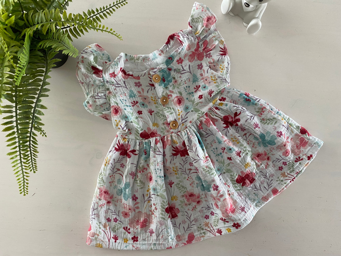 Laat je kleintje stralen in dit super schattige en speelse meisjes jurkje, gemaakt van zachte hydrofiele katoenen stof en bedrukt met fleurige bloemetjes. Dit vrolijke jurkje is perfect voor zonnige dagen vol avontuur, met een print die de natuur tot leven brengt en een glimlach op elk gezicht tovert. De charmante houten knoopjes aan de voorkant voegen een rustieke touch toe, terwijl de lichte en ademende stof zorgt voor ultiem comfort. Of ze nu danst in de tuin, een feestje bijwoont of gewoon geniet van een zomerse dag, dit jurkje houdt je meisje er altijd prachtig en vrolijk uitzien, klaar voor elk speels moment!
