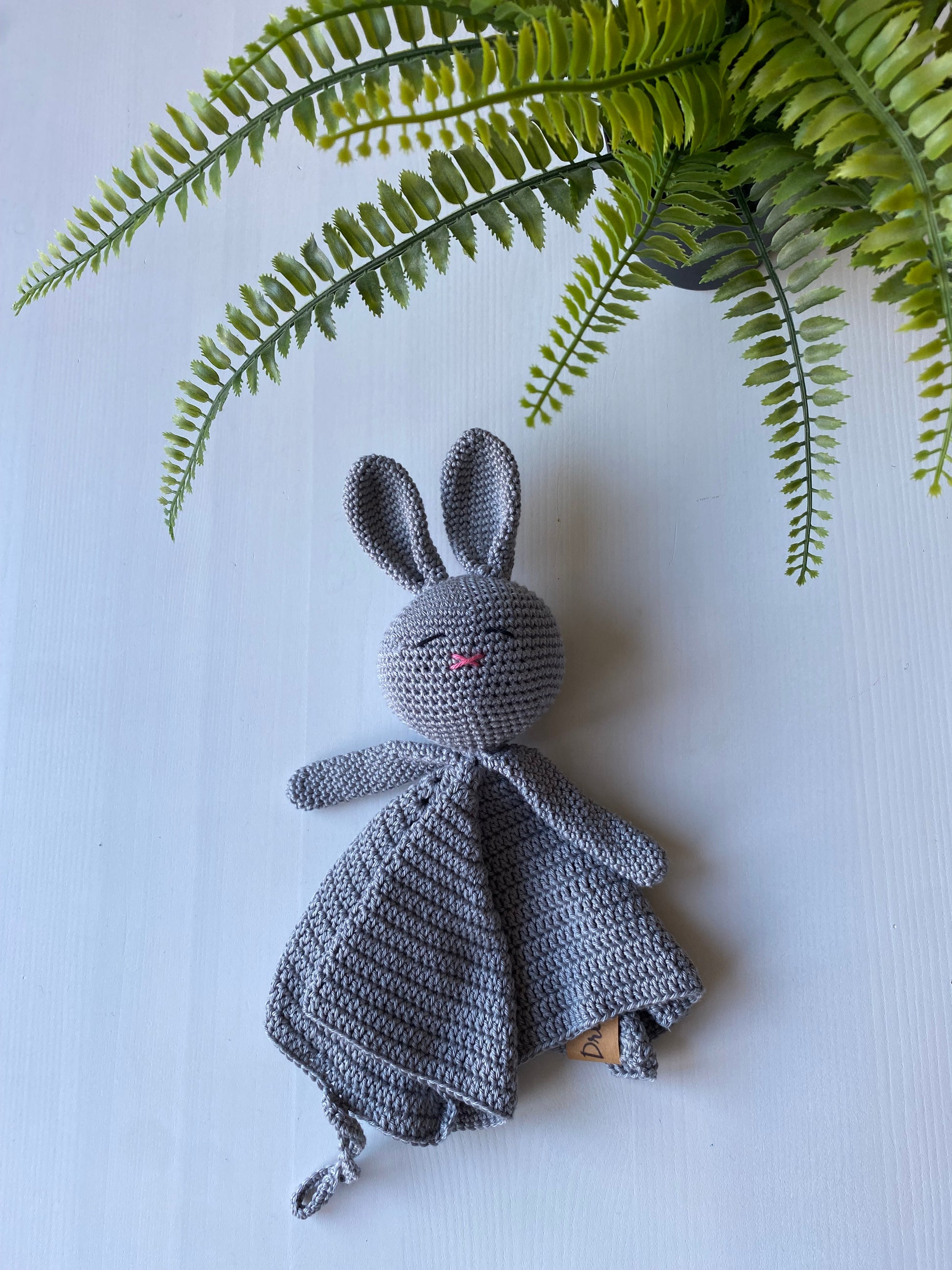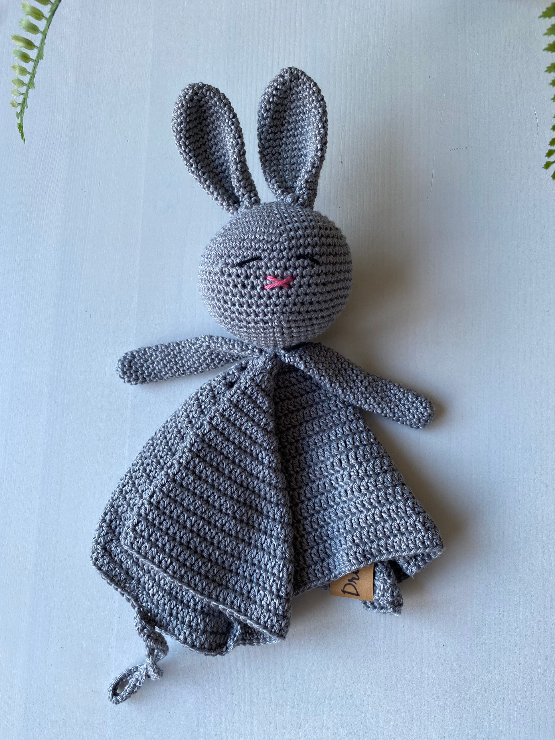 Ontdek de perfecte knuffelvriend voor je kleintje: ons gehaakte knuffeldoekje met speenkoord in grijze katoenen garen! Dit lieve konijntje is niet alleen een superzachte metgezel voor je kleintje, maar ook een praktisch doekje met een handig speenkoord dat alles op zijn plaats houdt. De kleur grijs straalt een leuke charme uit, waardoor het een rustige en elegante aanvulling is voor elke kinderkamer. Gemaakt van 100% katoen, biedt het een knuffelbare textuur die heerlijk aanvoelt en een gevoel van veiligheid en comfort geeft. Of je nu op zoek bent naar een bijzonder cadeau of gewoon een extra dosis liefde voor je kleintje, dit knuffeldoekje met speenkoord konijntje is klaar om een speciale plek in hun hart te veroveren en elke dag een beetje zachter te maken!