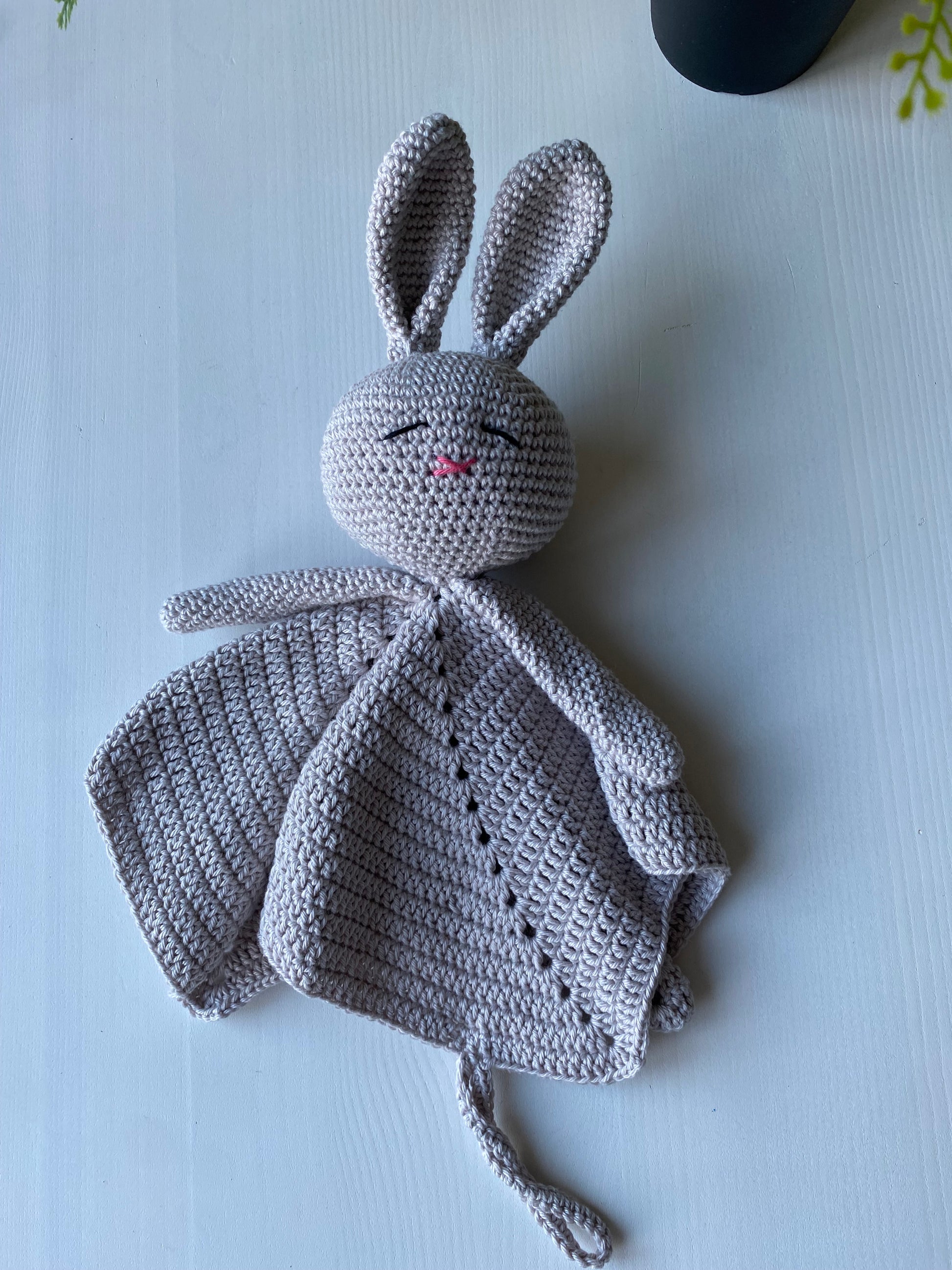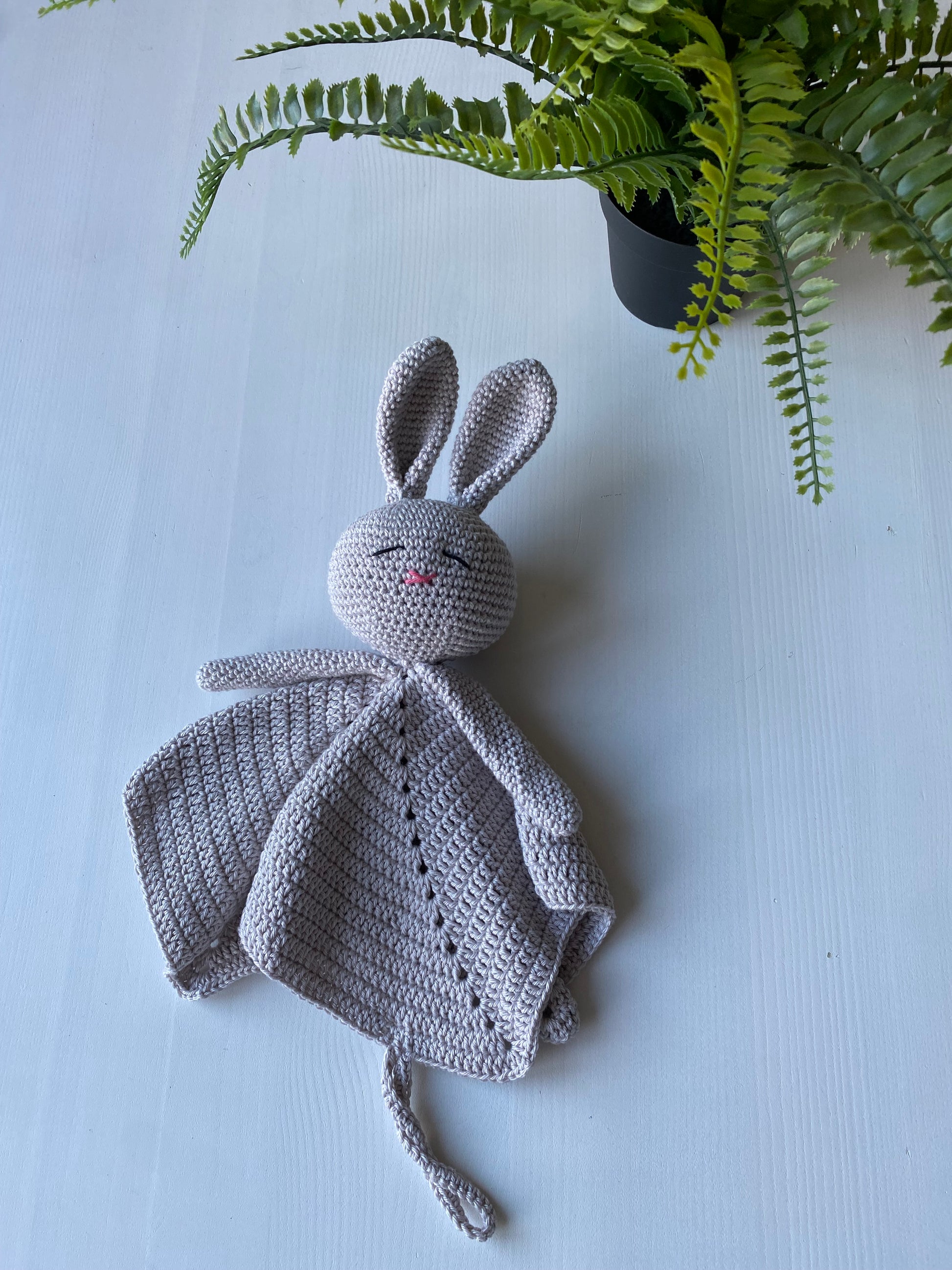 Ontdek de perfecte knuffelvriend voor je kleintje: ons gehaakte knuffeldoekje met speenkoord in zachte witgrijze katoenen garen! Dit lieve konijntje is niet alleen een superzachte metgezel voor je kleintje, maar ook een praktisch doekje met een handig speenkoord dat alles op zijn plaats houdt. De delicate witgrijze kleur straalt een serene charme uit, waardoor het een rustige en elegante aanvulling is voor elke kinderkamer. Gemaakt van 100% katoen, biedt het een knuffelbare textuur die heerlijk aanvoelt en een gevoel van veiligheid en comfort geeft. Of je nu op zoek bent naar een bijzonder cadeau of gewoon een extra dosis liefde voor je kleintje, dit knuffeldoekje met speenkoord konijntje is klaar om een speciale plek in hun hart te veroveren en elke dag een beetje zachter te maken!