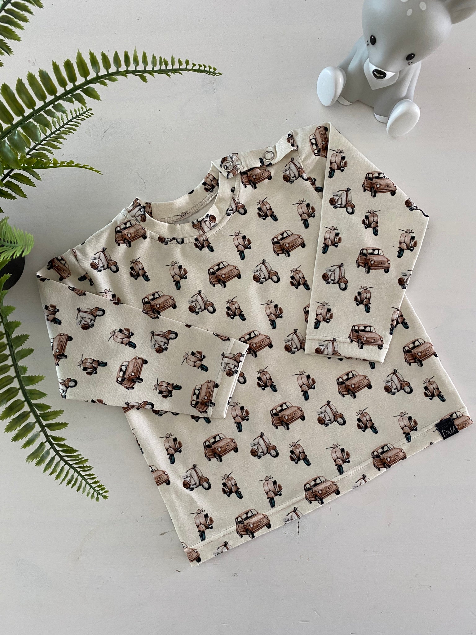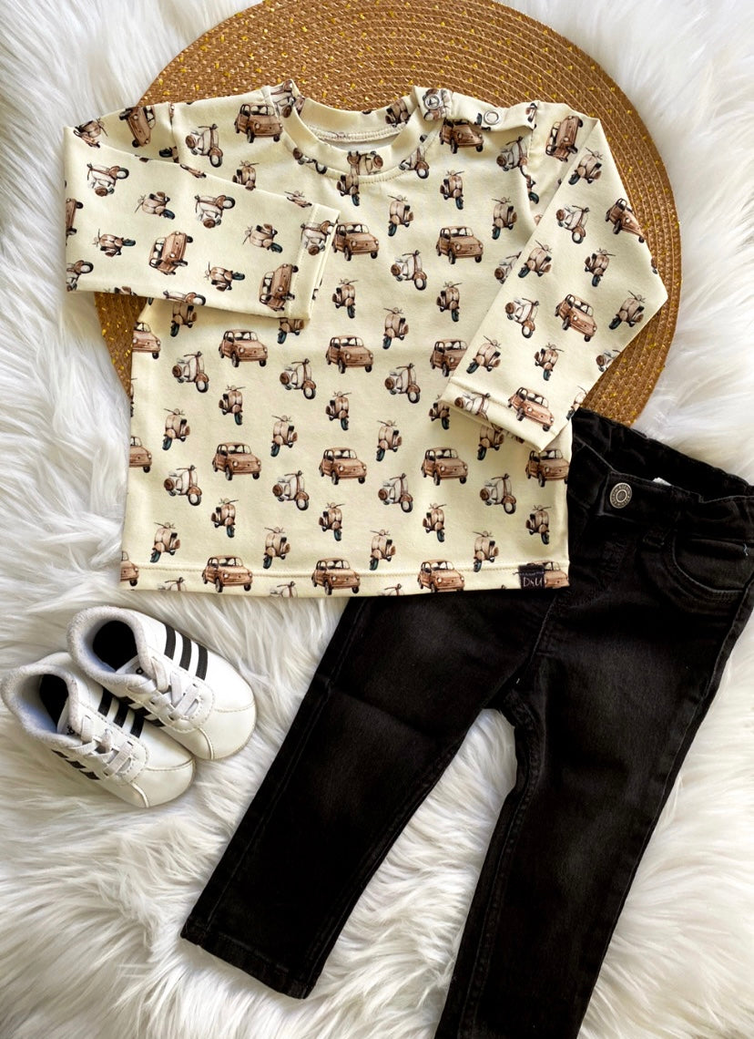 Deze stoere jongenslongsleeve in beige katoenen tricot stof is een must-have voor elke kleine snelheidsduivel! Met een coole motorprint straalt deze longsleeve pure avontuurlijke energie uit. De zachte, ademende stof zorgt voor optimaal comfort, ideaal voor actieve dagen vol speelplezier en ontdekkingen. De stijlvolle beige kleur gecombineerd met de gedurfde motorprint maakt deze longsleeve perfect voor elke kleine jongen die klaar is om de wereld te veroveren op zijn denkbeeldige motorfiets. Een geweldige keuze voor een coole, trendy look die altijd in beweging is