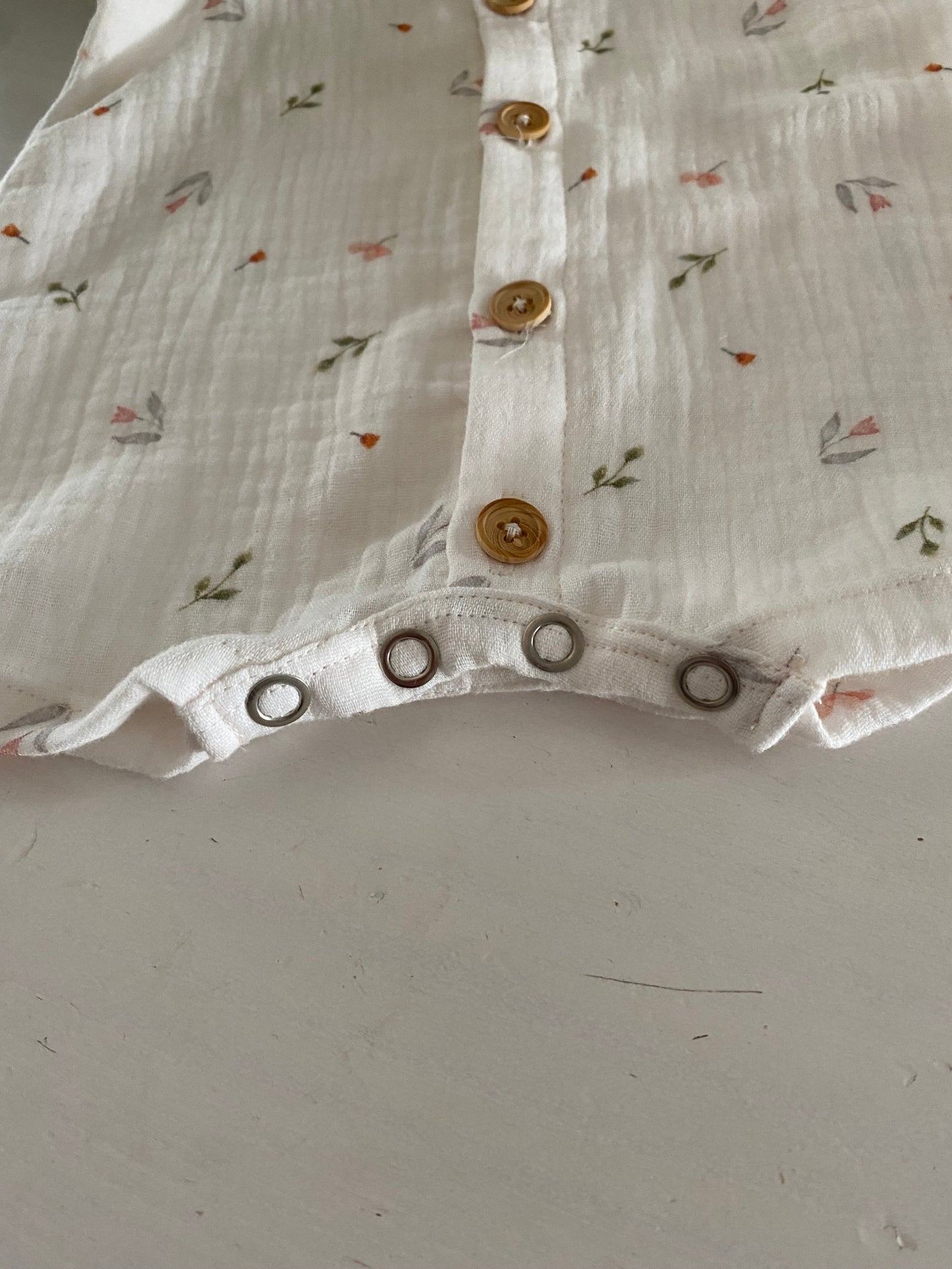 Laat je kleintje stralen in dit super schattige tuinpakje voor meisjes, gemaakt van ecru hydrofiele katoenen stof die heerlijk ademend en zacht is. Dit prachtige pakje is versierd met kleine, lieve tulpjes die een speelse en charmante uitstraling geven. De delicate rushes aan de schouders voegen een extra vleugje elegantie toe, waardoor je baby in dit tuinpakje onweerstaanbaar schattig zal zijn. Ideaal voor zonnige dagen en avontuurlijke uitstapjes, dit tuinpakje zorgt ervoor dat je kleintje comfortabel en stijlvol door de dag gaat. Een must-have voor elke kleine modeprinses!